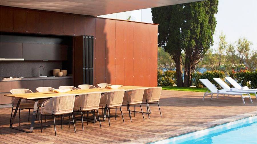 The bamboo hardwood flooring placed all around the swimming pool and the rest of the outdoor area makes the villa the very definition of modernity and stress-free livable design.